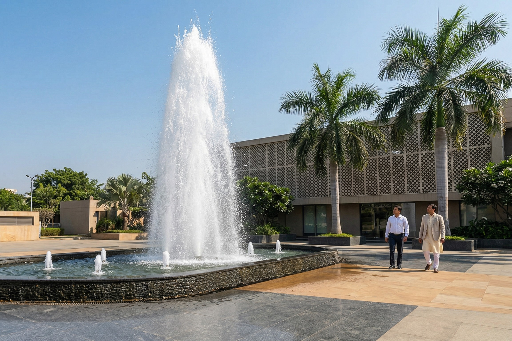 Experience high-pressure vertical displays and elegant bell-shaped water patterns designed for high-impact visual appeal in public and private spaces.